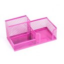 Metalowy, trzykomorowy przybornik na biurko powleczony różowym lakierem. Wymiary: 205x103x98 mm.
