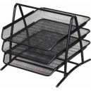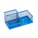 Metalowy, trzykomorowy przybornik na biurko powleczony niebieskim lakierem. Wymiary: 205x103x98 mm.