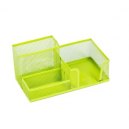 Metalowy, trzykomorowy przybornik na biurko powleczony limonkowym lakierem. Wymiary: 205x103x98 mm.