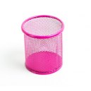 Przybornik na długopisy metalowy, powleczony różowym lakierem. - wysokość 98 mm - średnica 91 mm