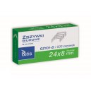 Zszywki biurowe w rozmiarze 24/8 mm. Opakowanie zawiera 500 sztuk zszywek.