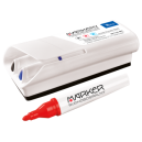 Komplet trzech markerów suchościeralnych (czarny, czerwony, niebieski) ze ścierakiem magnetycznym. Końcówka stożkowa: 3 mm. Jednostka sprzedaży - 1 komplet (3 markery i ścierak). Opakowanie: blister