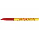 Długopis automatyczny w plastikowej żółtej obudowie w gwiazdki, klip i gumowy uchwyt w kolorze tuszu. Trwała kulka z węglików spiekanych 0,7mm. Szwajcarski wkład z tuszem gładko-piszącym do pisania po wszystkich rodzajach papieru, np. po odwrotnej stronie druków samokopiujących (faktur). Trwały mechnizm włączający, wygodny gumowy uchwyt,...