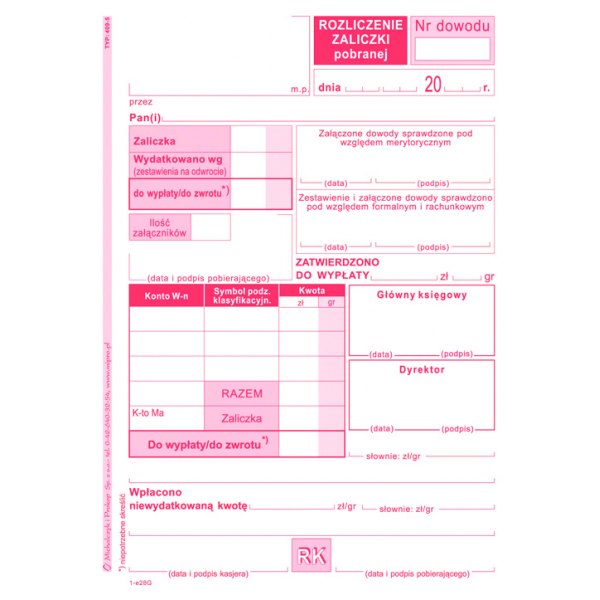 Rozliczenie zaliczki A6