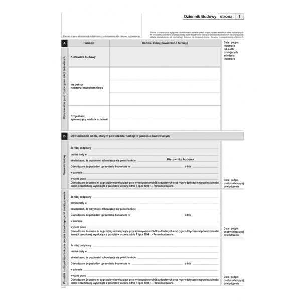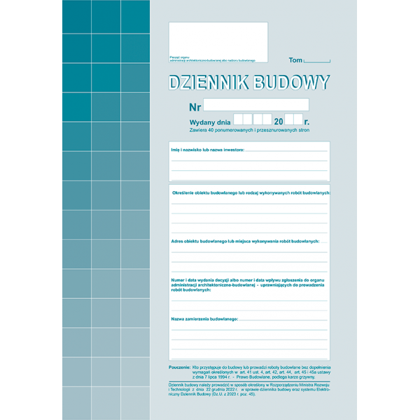 DZIENNIK BUDOWY 40STR A-4 1+0