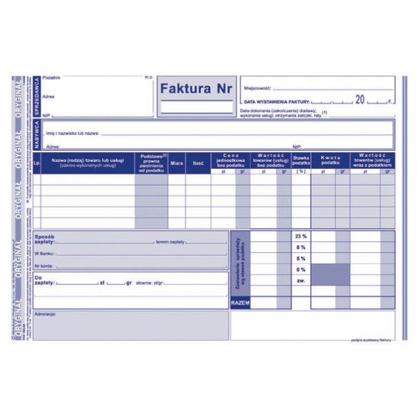 druk: jednostronny (oryginał + kopia)