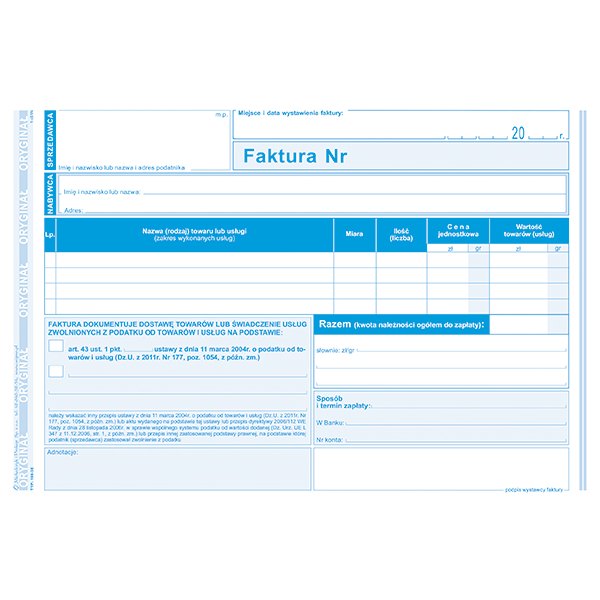 na podstawie art. 43 ust. 1 pkt. 2-41 ustawy z dnia 11.03.2004r. o podatku od towarów i usług