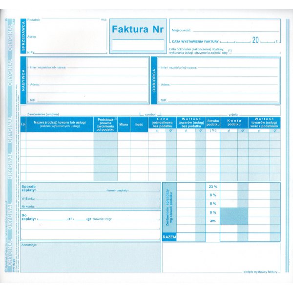 druk: jednostronny (oryginał + 2 kopie)