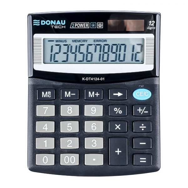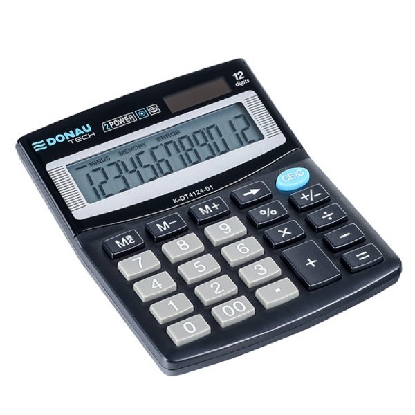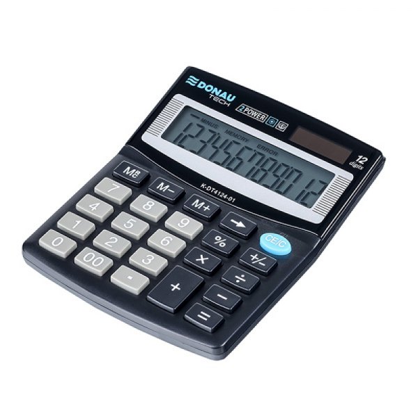* kalkulator biurowy DONAU TECH z 12-cyfrowym wyświetlaczem z zasilaniem bateryjno -solarnym