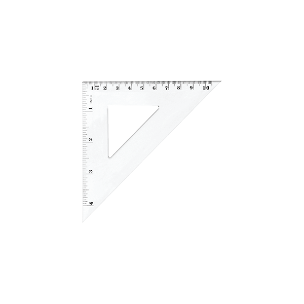 Ekierka równoramienna wykonana z przezroczystego, trwałego tworzywa.