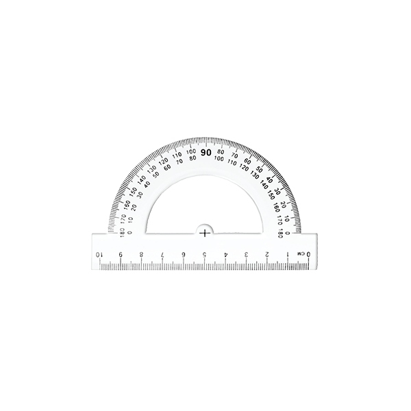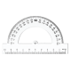 Kątomierz wykonany z przeźroczystego, trwałego tworzywa.