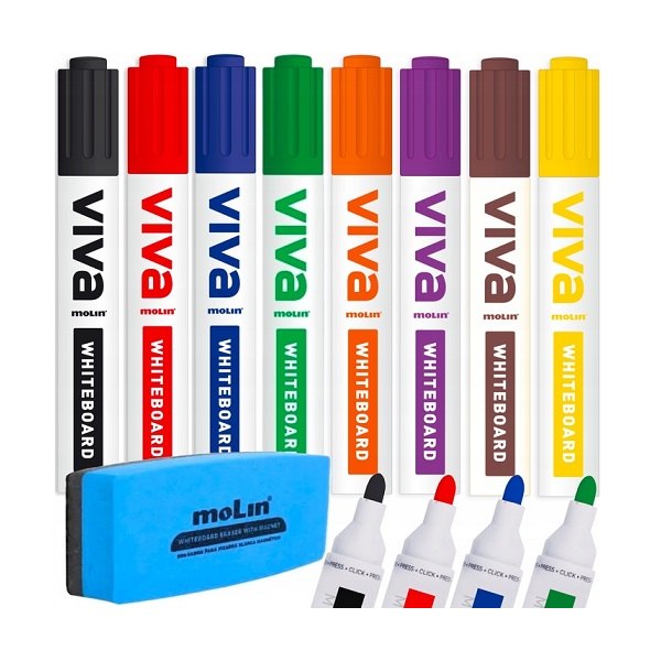 Marker suchościeralny VIVA 8 kolorów + gąbka komplet
