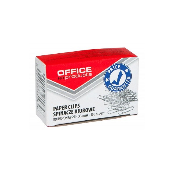 SPINACZE OKRĄGŁE OFFICE PRODUCTS, 33MM, 100SZT., SREBRNE