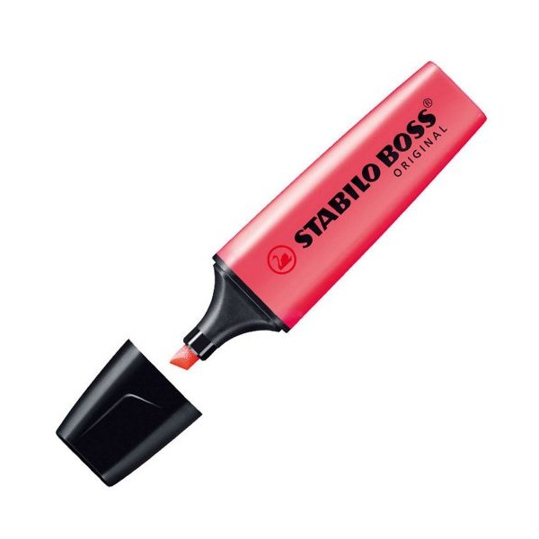 Stabilo Boss to niekwestionowany lider na rynku zakreślaczy. Wysoce ceniony przez bardzo szerokie grono użytkowników, którzy nie wyobrażają sobie biurka bez tego produktu. Zakreślacz o właściwościach fluorescencyjnych z tuszem na bazie wody. Niezwykle uniwersalny, odpowiedni do pisania na wszystkich rodzajach papieru. Nie wysycha pozostawiony bez skuwki przez okres nawet 4 godzin. Wyposażony w charakterystyczną, ściętą końcówkę, dzięki której mamy możliwość pisania dwoma grubościami kreski. Najodpowiedniejszy produkt do zakreślania i eksponowania istotnych fragmentów dokumentów, notatek, raportów. Dostępny w szerokiej gamie intensywnych i żywych kolorów. Kolor czerwony.