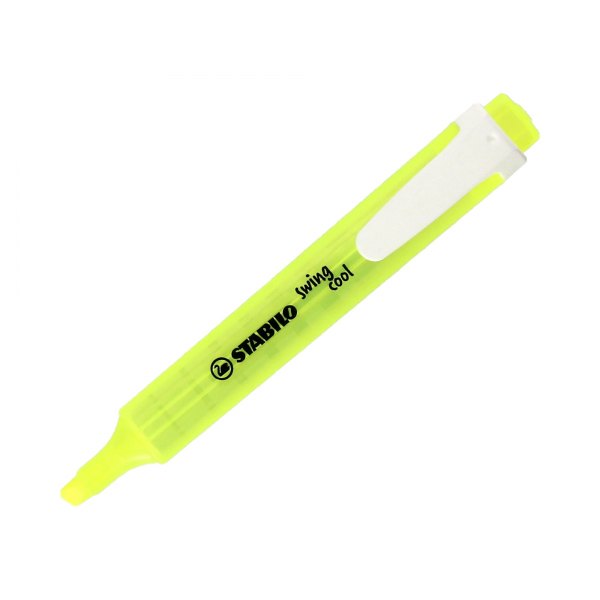 Zestaw wszystkich znanych zakreślaczy marki Stabilo w nowej odsłonie Swing Cool. Posiadają wentylowaną skuwkę i ergonomiczny klips, zapewniający wygodę przy przenoszeniu. Pozostawione bez skuwki nie zasychają nawet przez 4 godziny, co pozwoli skupić się na wykonywanym zadaniu, zamiast na ciągłym upewnianiu się czy zakreślacz jest zamknięty. Ścięta końcówka pozwala kreślić linię od 1 do 4 mm. Kieszonkowe wydanie renomowanego produktu dla każdej kieszeni. Zestaw zawiera cztery kolory.