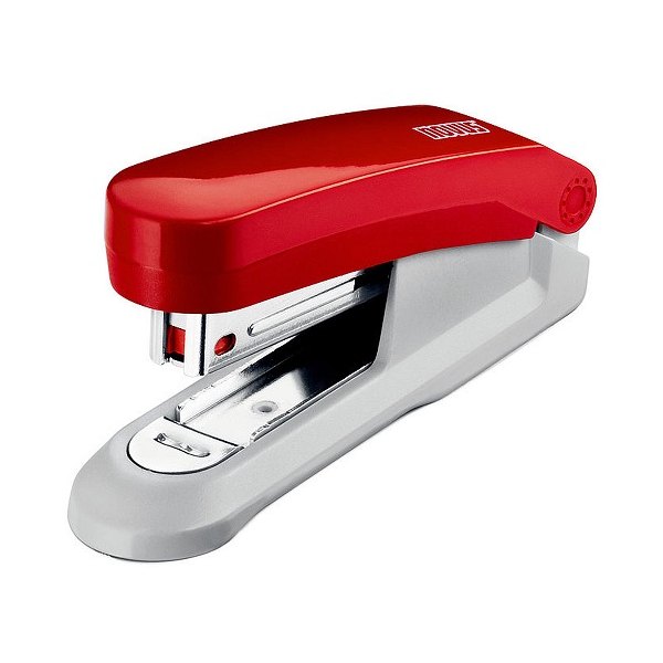Lekki, kompaktowy zszywacz Novus E15. Urządzenie wykonane z metalu w obudowie z tworzywa sztucznego. Posiada zintegrowany metalowy rozszywacz. Umożliwia zszycie permanentne i tapicerskie. System ładowania zszywek od góry. Waga zszywacza to zaledwie 86 g! Maksymalna głębokość wsuwania kartki to 37 mm. Kolor czerwony. Dołączone 200 zszywek No.10.