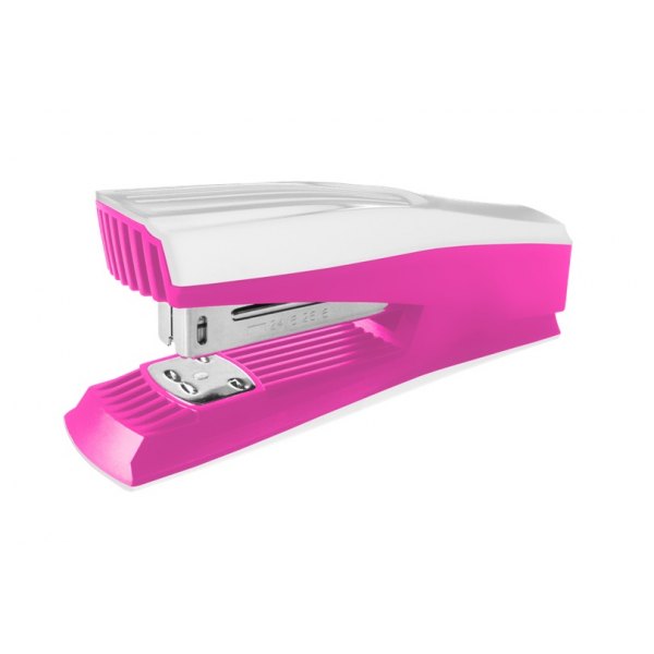 Zszywacz w obudowie z tworzywa sztucznego, części mechaniczne metalowe. Zszywanie otwarte/zamknięte. Dostosowany do zszywek o rozmiarze 24/6-26/6 mm. Zszywa do 20 kartek (70 g/m2). Głębokość wsuwania kartek: 54 mm. Pojemność magazynka: 100 zszywek. Opakowanie: pudełko PP
