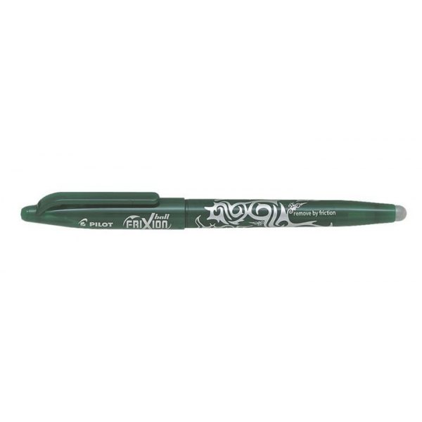 Długopis Pilot Frixion ze zmazywalnym tuszem Metamo. Tusz i system wymazywania opatentowany przez firmę Pilot. Napisany piórem Frixion tekst potrzyj dynamicznie szarą końcówką i zobacz jak znika w magiczny sposób! Możesz natychmiast poprawić swoje błędy i pomyłki. Długopis na wymienne wkłady z tuszem w różnych nieblaknących i odpornych na działanie wody kolorach, tusz reaguje na działanie temperatury: znika przy temperaturze ok. + 65°C, a powraca przy temperaturze ok. - 10°C. Kolor obudowy długopisu wskazuje na kolor tuszu. Grubość linii pisania: 0,35 mm, grubość końcówki: 0,7 mm. Kolor zielony. Długopis Frixion nie powinien być stosowany przy wypisywaniu oficjalnych dokumentów