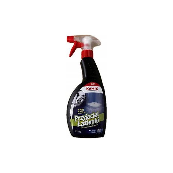 KAMIX Przyjaciel Łazienki Aktywna Piana /kamień, rdza mydło/ 500ml – produkt doskonale usuwa kamień, rdze, osady z mydła. Idealnie radzi sobie z powierzchniami pionowymi jak: kabiny prysznicowe, baterie, armatura, wszelkie urządzenia sanitarne.