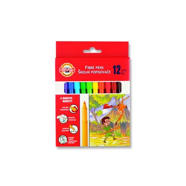 FLAMASTRY ZMYWALNE, 12 KOLORÓW, KOH-I-NOOR