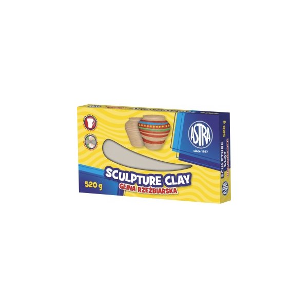 Glina rzeźbiarska może być wykorzystana na wszystkich stopniach kształcenia plastycznego oraz do zajęć terapeutycznych. Ze względu na swoje parametry, glina ta doskonale nadaje się modelowania, rzeźbienia (lepienia), kształtowania na toczku, odciskania i odlewania w formach gipsowych. Po wysuszeniu wyrób można malować farbami ASTRA lub poddać procesowi wypalania w temperaturze 850-1200°C. Szerokie możliwości artystyczne i edukacyjne stawiają glinę rzeźbiarską wśród najszlachetniejszych tworzyw plastycznych. Opakowanie 0,52 kg.