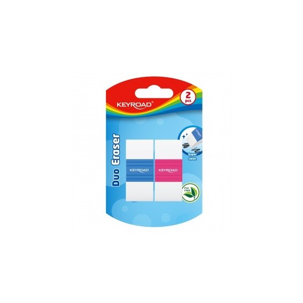Gumka do ścierania KEYROAD, ergonomiczna, dwukolorowa, 2 szt., blister, mix kolorów