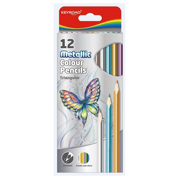 Kredki ołówkowe KEYROAD, trójkątne, metaliczne, 12szt., mix kolorów
