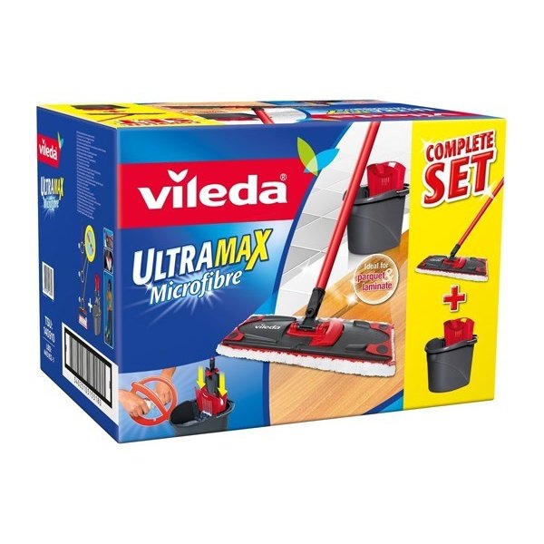 Zestaw BOX zawiera: mop płaski z trzyczęściowym drążkiem oraz wiadro.