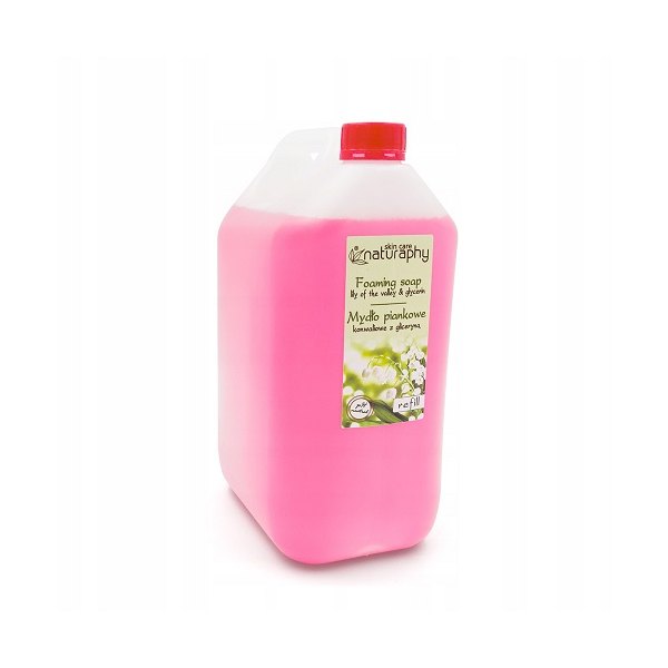 Wysokopieniące mydło w płynie do mycia rąk Naturaphy o zapachu konwaliowym.