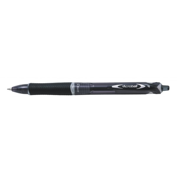 Nowy rodzaj tuszu sprawia, że długopis pisze płynnie i miękko. Acroball to długopis automatyczny z wymiennym szybkoschnącym olejowym wkładem. Ergonomiczny gumowy uchwyt w kolorze tuszu zapewnia wygodę pisania i zapobiega wyślizgiwaniu z dłoni podczas pisania. Końcówka pisząca wykonana ze stopu węglika wolframu nie ulegnie odkształceniu i zużyciu. Linia pisania 0,28 mm, długość linii pisania 800 m. Wymienne wkłady BRFV-10. Kolor czarny.