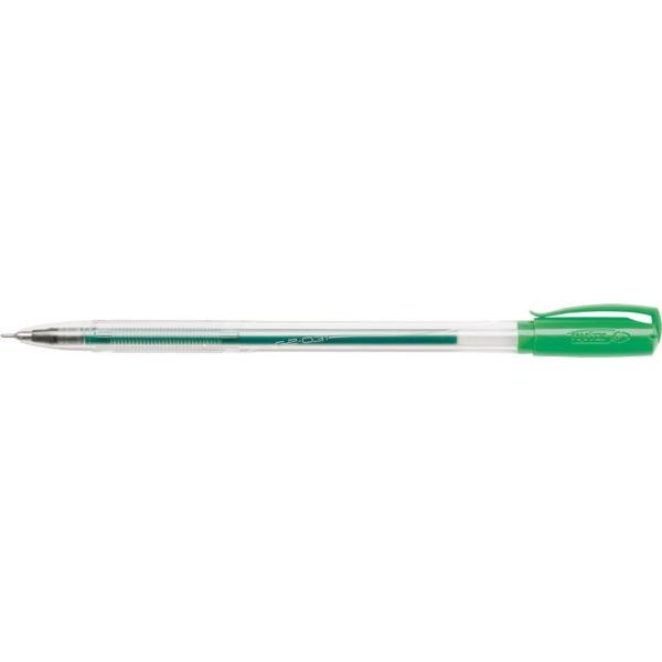 Pióro żelowe na wkłady wymienne R-140 z igłową końcówką piszącą umożliwiającą rysowanie i kreślenie przy linijce i szablonie. Idealnie sprawdza się przy opisywaniu faktur. Nasadka zaopatrzona w silikonową kulkę zabezpieczającą przed wysychaniem. Nasadka i nakrętka obudowy w kolorze tuszu. Przeźroczysta obudowa umożliwia kontrolę ilości tuszu. Średnica kulki: 0,5 mm. Długość linii pisania 800 metrów. Kolor zielony.