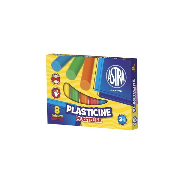 Plastelina jest przeznaczona dla dzieci do zabawy i nauki modelowania w szkołach i przedszkolach, jak również w pracowniach plastycznych. Delikatna w dotyku i łatwa w modelowaniu plastelina ASTRA nie klei się do rąk oraz nadaje się do wielokrotnego użytku. Produkowana jest z zastosowaniem doskonałych, bezpiecznych składników. Nadaje się do wykonywania wielu prac, m.in. modeli małych i dużych, odciskania wzorów, wykrawania foremkami, tworzenia obrazów poprzez rozcieranie palcami, a także do ćwiczeń terapeutycznych. Opakowanie mix 8 kolorów.