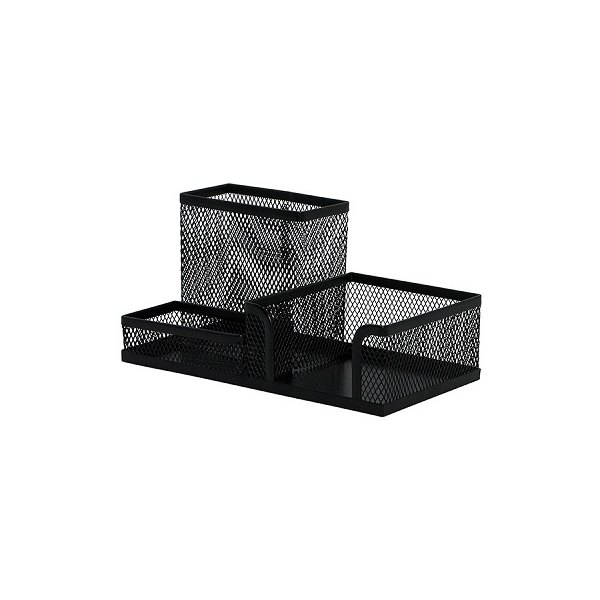 Przybornik na biurko Q-CONNECT Office Set, metalowy, 3 komory, czarny