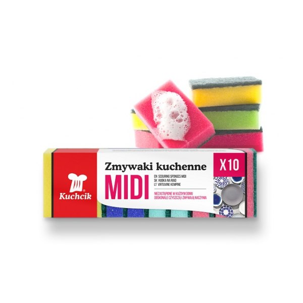 Zmywak kuchenny Aku Kuchcik Midi. Doskonale usuwa zabrudzenia z naczyń. Opakowanie zawiera 10 sztuk produktu.