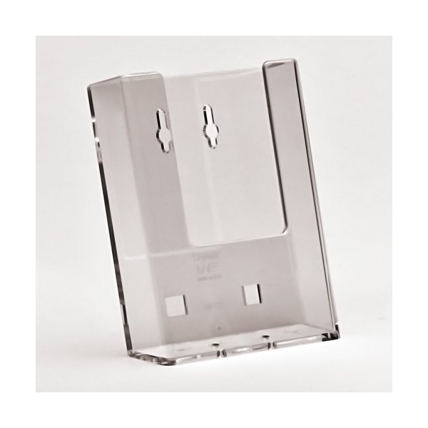 Stojak na ulotki (symbol W110) jest wykonany z przezroczystego odlewanego polistyrenu. Posiada otwory umożliwiające przymocowanie do ściany za pomocą kołków montażowych. W komplecie ze stojakiem znajduje się nóżka umożliwiająca po jej zamocowaniu postawienie stojaka na blacie stołu, parapecie czy też innym miejscu. Przeznaczony jest na ulotki w formacie 1/3 A4 (DL). Estetycznie wykonany, zapewnia dobrą prezencję materiałów w nim zamieszczonych.