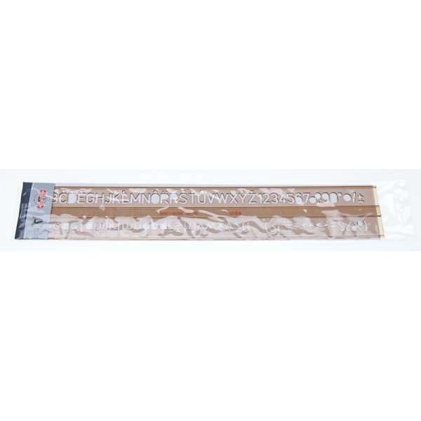 Szablony literowo-cyfrowe pisma pionowego. Umożliwiają pisanie liter małych i dużych, cyfr, znaków interpunkcyjnych i specjalnych oraz symboli matematycznych. Wykonane z dymionego tworzywa sztucznego. Posiadają specjalne odsadzenia