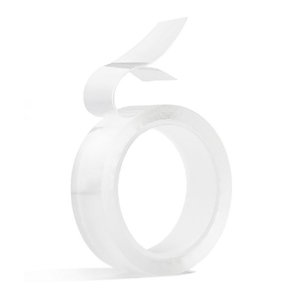 Dwustronna przeźroczysta taśma służąca do mocowania różnych przedmiotów do ścian, drzwi, okien itp. Jest łatwa do usunięcia, nie pozostawia śladów. Taśma Nano Tape nadaje się do ponownego użycia, wystarczy spłukać taśmę czystą wodą. Jest wyjątkowo elastyczna, można ją przycinać do dowolnej długości. Stanowi alternatywę dla pinezek, taśmy dwustronnej, a także gwoździ i kołków. Nadaje się do użytku na wszystkich gładkich i nieporowatych powierzchniach, jakich jak: blat biurka, szafki kuchenne, płytki w łazience, panele itp. Wymiary: 2 cm x 3 m, grubość: 1 mm