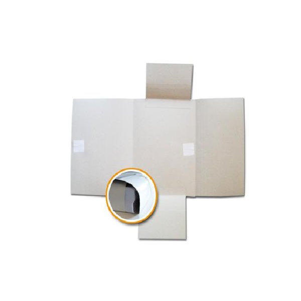 Teczka wiązana wykonana z ekologicznej biało-szarej bezkwasowej tektury o pH 7,5-9,5.