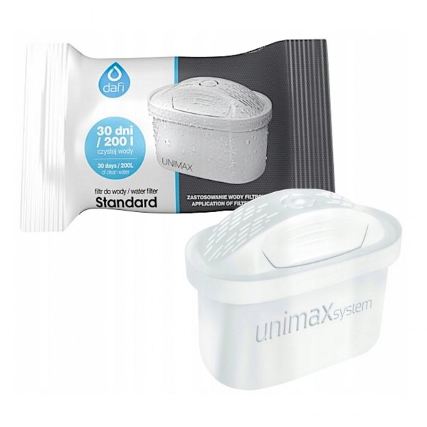 Oryginalny i uniwersalny wymienny wkład / filtr DAFI UNIMAX do dzbanków produkcji DAFI, BRITA, AQUAPHOR, BOSCH, LAICA, ZELMER, KENWOOD, ANNA, EVOLVE itp. Zastępuje filtry Dafi UNIMAX, BRITA MAXTRA, Laica Bi-Flux, FL 402H oraz inne. Filtr usuwa z wody wszelkiego rodzaju zanieczyszczenia.