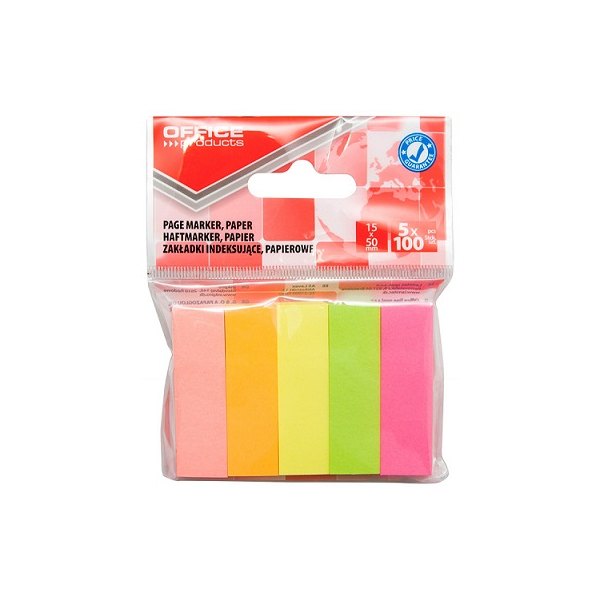 Zakładki indeksujące OFFICE PRODUCTS, papier, 15x50mm, 5x100 kart., zawieszka, mix kolorów